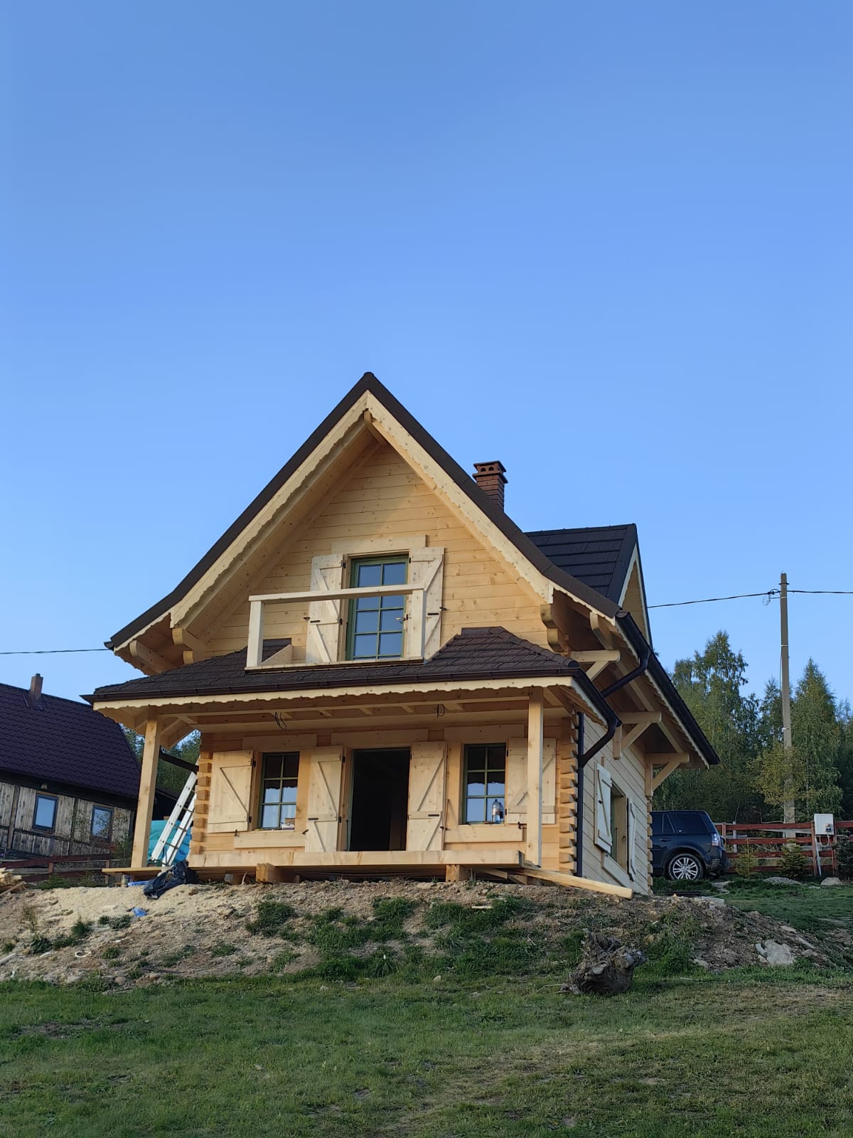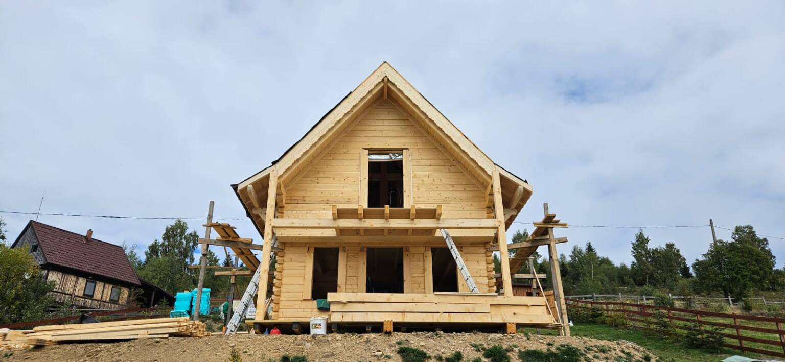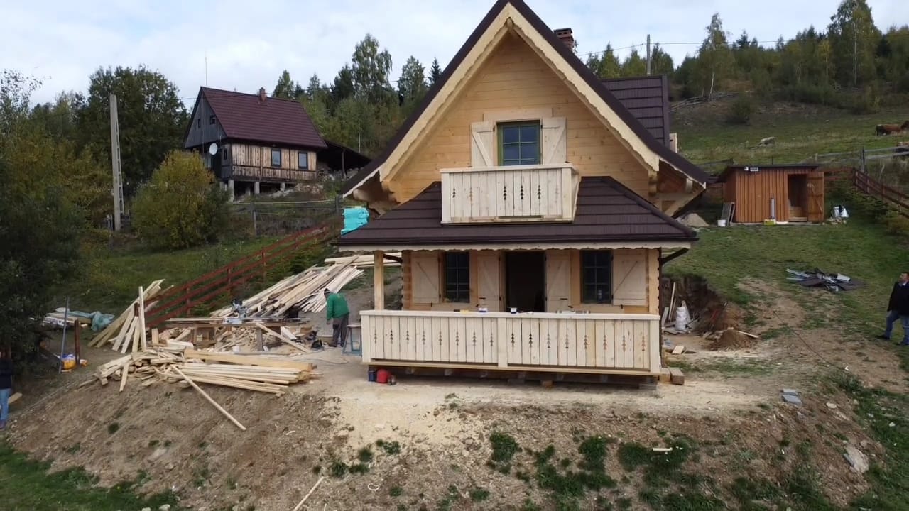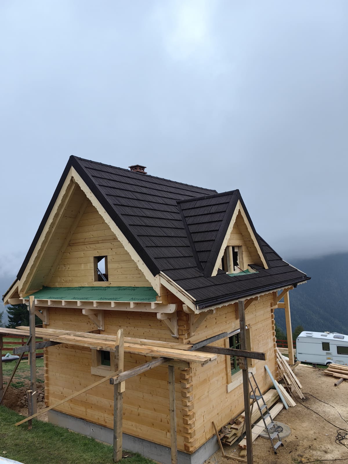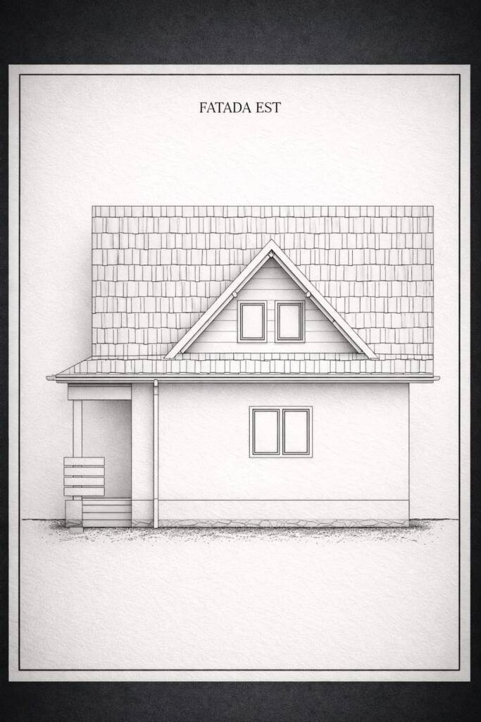 Arhitectura cabanei îmbină stilul montan Zakopane cu linii simple și proporții echilibrate, oferind o imagine armonioasă și elegantă. Balconul de la etaj și terasa generoasă de la parter adaugă volum și funcționalitate, creând un spațiu perfect pentru relaxare în mijlocul naturii. Elementele decorative din lemn masiv, subliniază autenticitatea construcției și atenția pentru detalii.