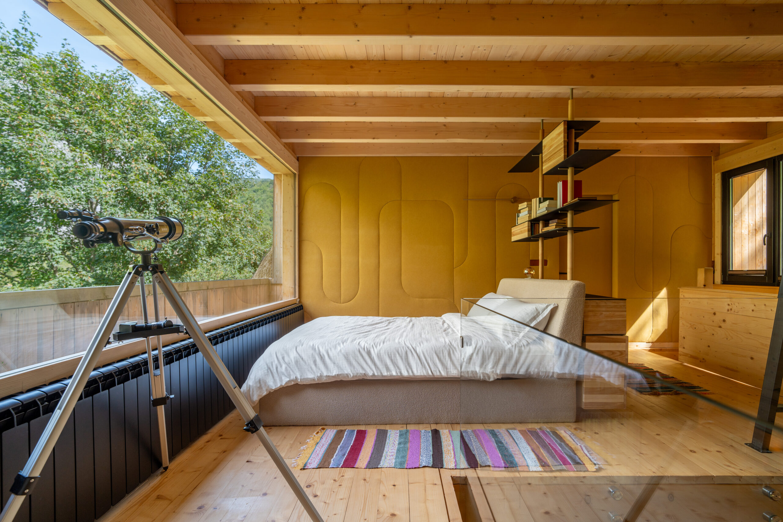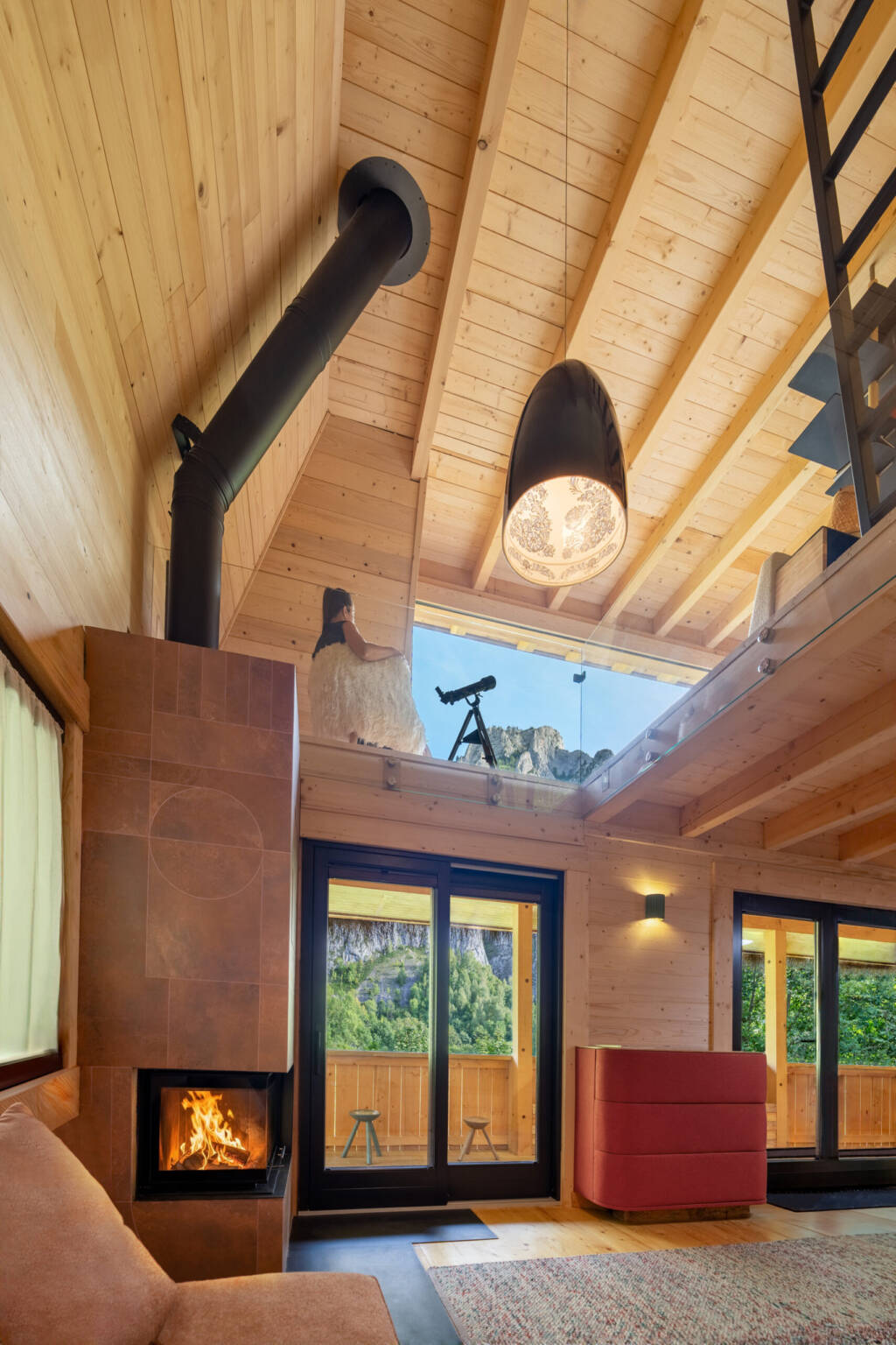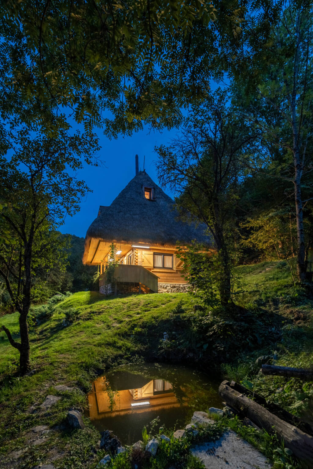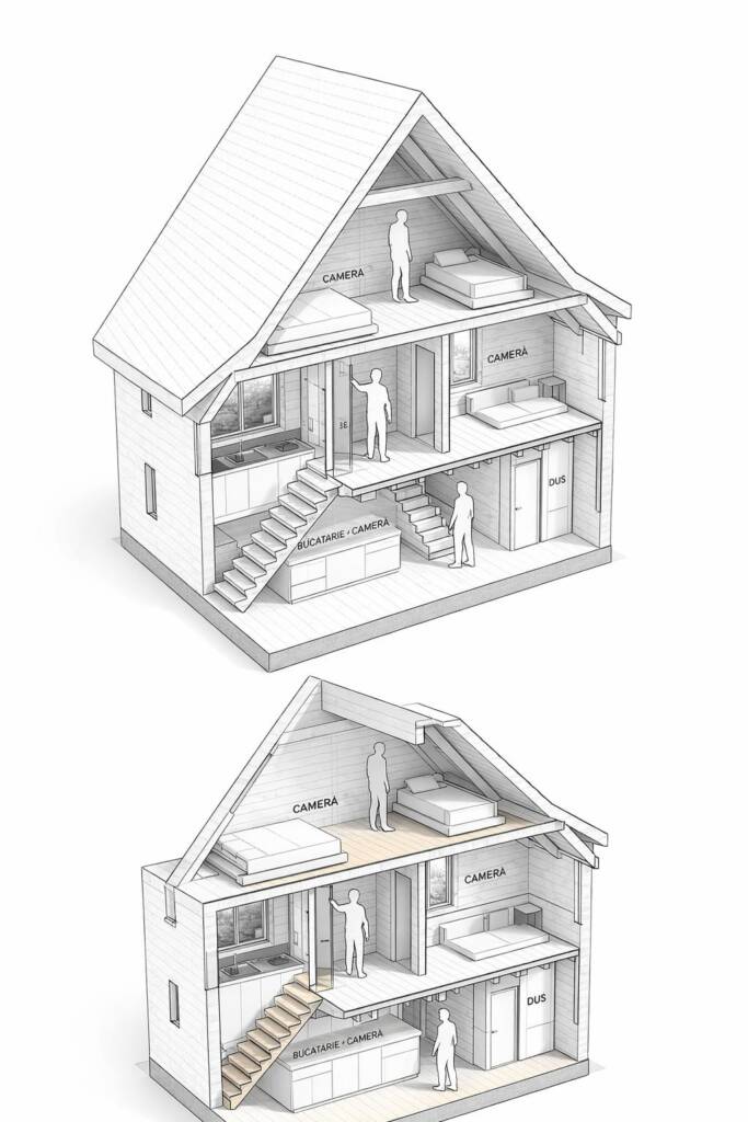 Structura și designul cabanei combină tehnica tradițională cu funcționalitatea contemporană, creând un spațiu durabil, armonios și autentic, ideal pentru zonele montane.