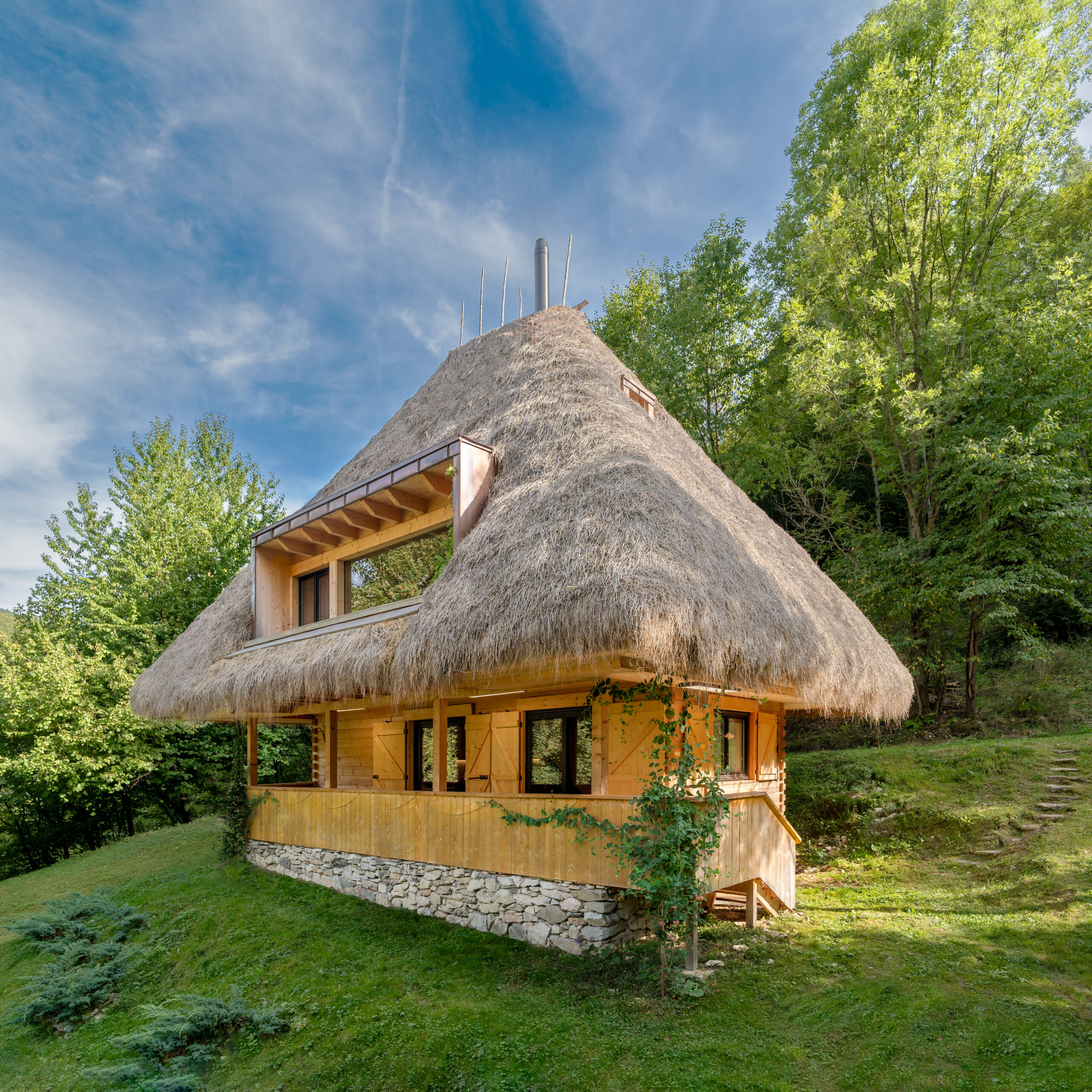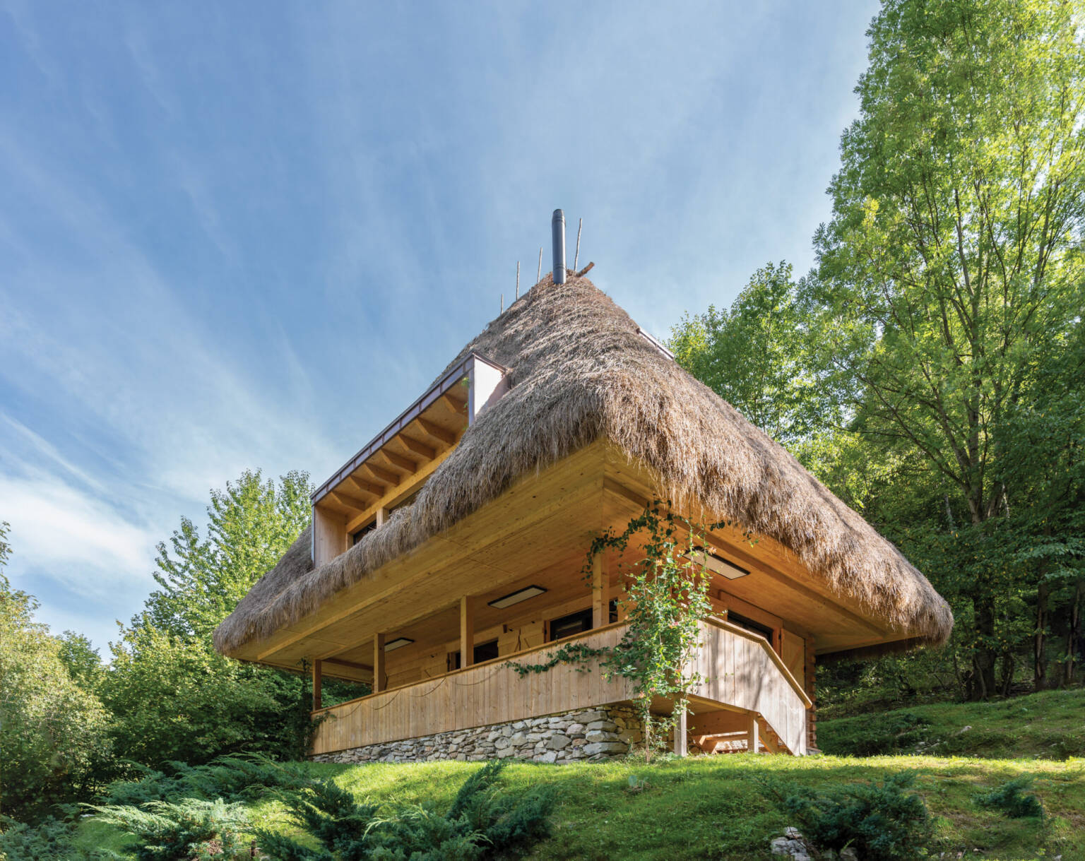 Proiectul reinterpretează arhitectura tradițională a caselor moțești din Apuseni, integrând elemente caracteristice în cheie modernă: